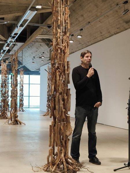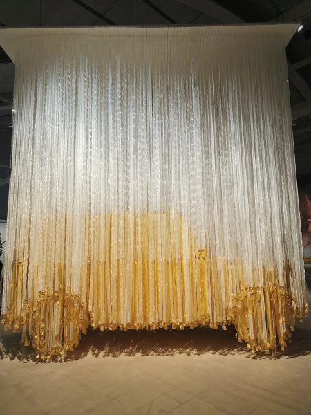 Imbrahim Mahama. Ghanalainen, alle nelikymppinen taiteilija, tunnetaan suurista installaatioistaan, joissa hän kommentoi globaalia kauppaa, kolonialismia ja taloudellista epätasa-arvoa.