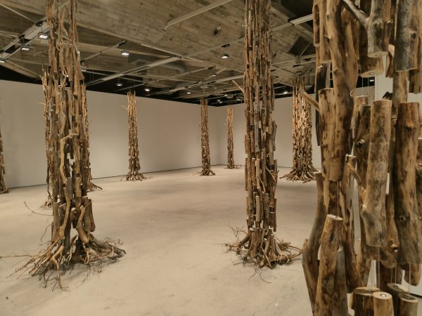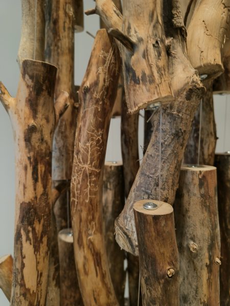 Invisible Fragilits, 2024. Lehmus- ja tammihahmot muistuttivat muun muassa Muumimaan Mörköjä.