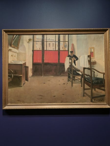 Suosikkilistalle pääsi myös Ramon Casas: Puigcerdan pikku parturi (1890). Parturin lattia saa ison roolin maalauksen etualalla. Liike ja hetki on hienosti läsnä. Asetelmallisesti erinomainen ja selkeästi yksi rohkeimmista arjen kuvauksista tässä näyttelyssä.