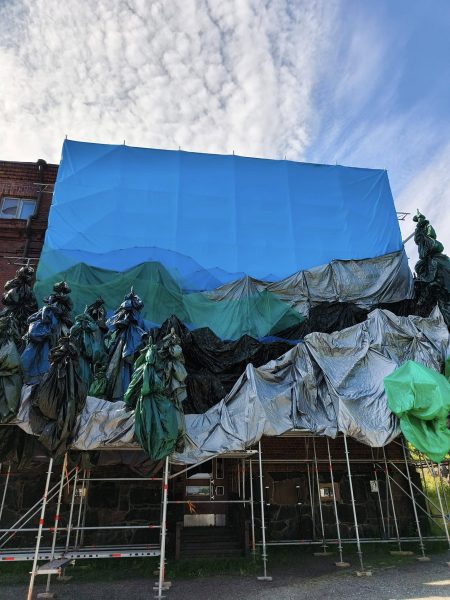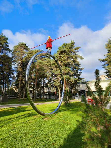 Pidin erityisesti suomalaisten Sara Bjarlandin Rantautuminen-teoksesta (sama kuin Millalla), jossa tyhjät rantaleludelfiinit näyttävät hylätyiltä kallioisella rannalla, ja Pia Sirénin valtavan suuresta, rakennustelineistä ja pressuista tehdystä Under cover -maisemasta.