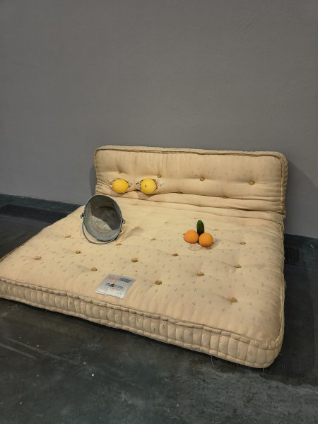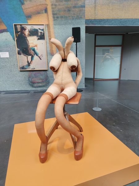 Krista: ”Minulla on läheinen suhde Sarah Lucasiin, sillä opiskellessani taidetta Lontoossa 1990-luvulla kahdesta suuresta nuoresta brittinaistaiteilijasta kohistiin paljon. He olivat Tracy Emin ja Sarah Lucas. En sittemmin ole nähnyt Lucasin teoksia. Eivätkä ole monet muutkaan suomalaiset, sillä Lucasin teoksia on nyt ensimmäistä kertaa esillä Suomessa ja Pohjoismaissa.”