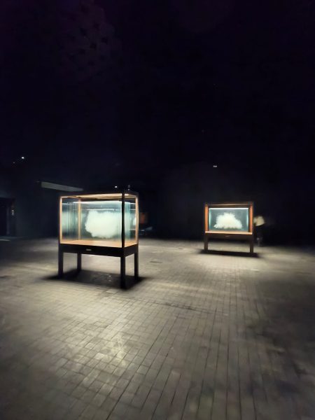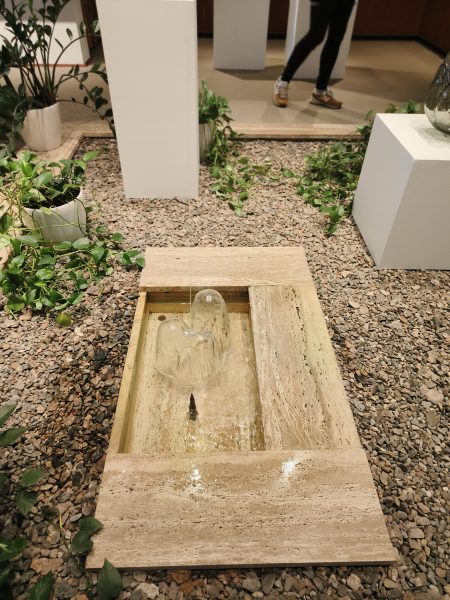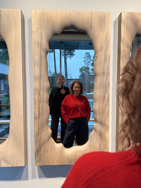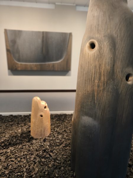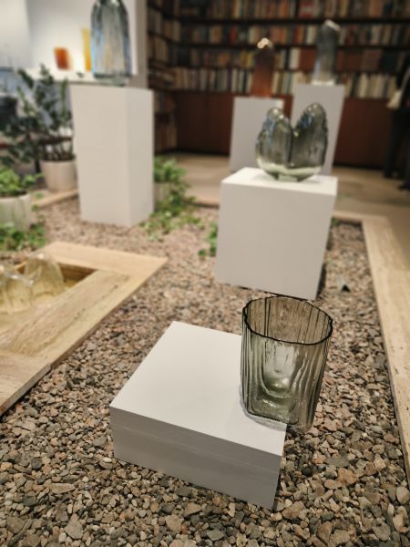 Kun selasimme näyttelykatalogia, ymmärsimme, miten tilasidonnaisia teokset ovat. Näyttelytilassa ne tuntuivat hiukan kutistuvan. Kuvissa taas näkyi, miten vuoropuhelu syntyy ja miten teokset kuuluvat luontoon. Lasiesineet näyttävät vedeltä, lumelta ja jäältä, ja puuteokset keskustelevat kasvavien puiden kanssa. Teokset olisivat toimineet loistavasti kesäaikaan museon pihalla. Siellä on upea luonto, meri ja puita. Syitä siihen, miksi ne eivät ole ulkona, on varmasti useita, lähtien teosten turvallisuudesta. Jäimme silti haaveilemaan.
