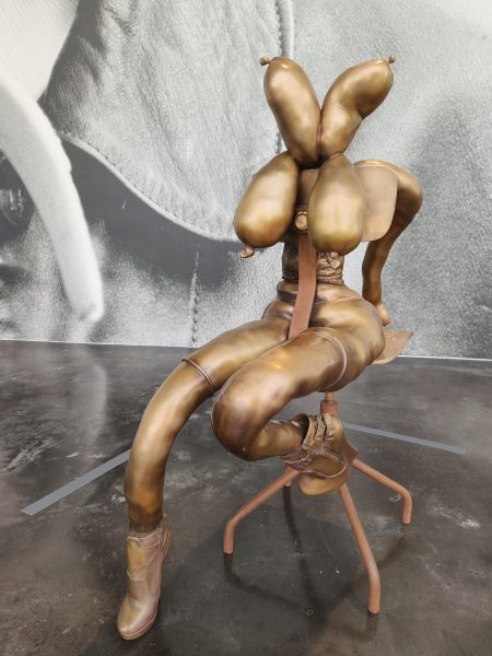 Veistoksessa nimeltä Margot (2015) on naisen alaruumis pakastimen päällä ja hahmon anaaliaukossa on tupakka. Lucasin tavaramerkkejä ovat haastaminen, röyhkeys ja provosointi. Hän on raju, ujostelematon, suora, häpeilemätön, karkeakin. Jos ja kun tupakka vaginassa aiheuttaa kohua vuonna 2025, voi miettiä, mitä vastaava taide aiheutti 90-luvulla Britanniassa?